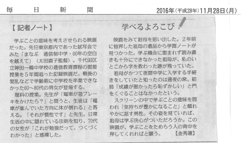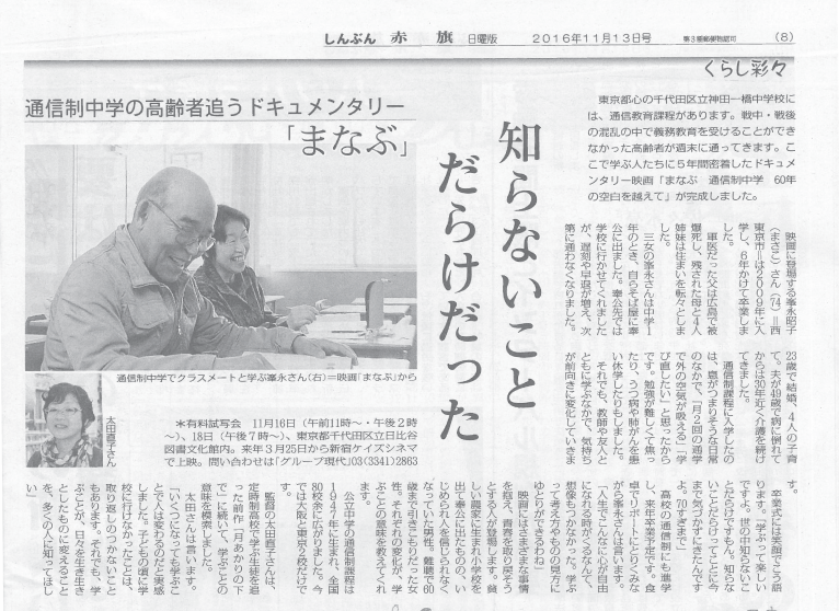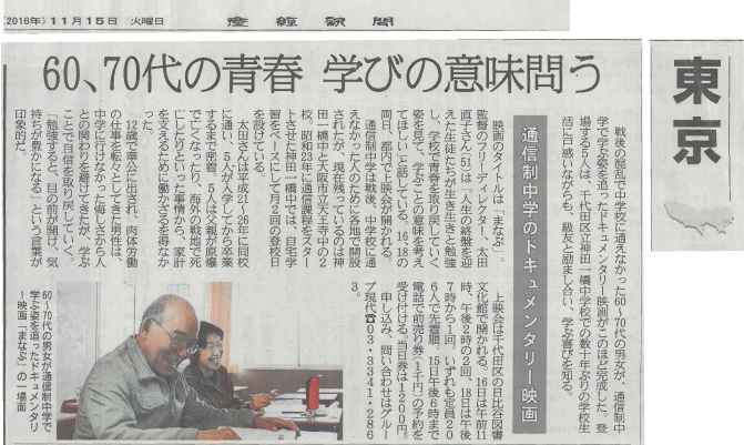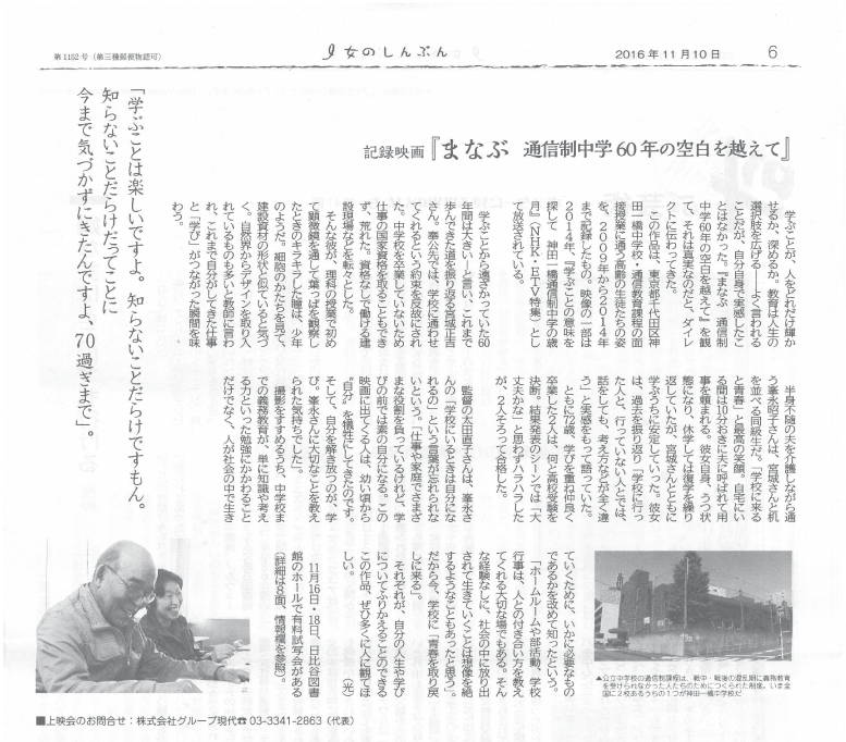 → 【オススメ映画・11/16.18に試写会!】『まなぶ 通信制中学 60年の空白を越えて』(外部サイト) -
