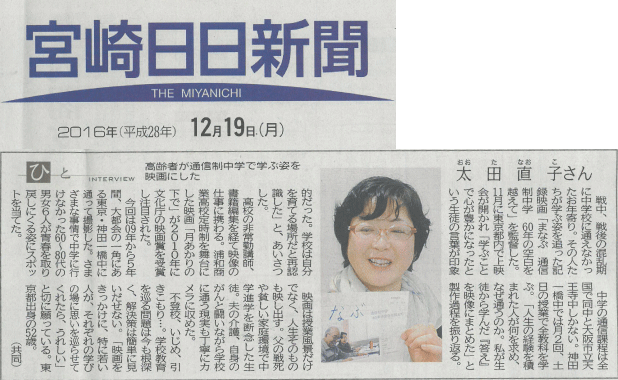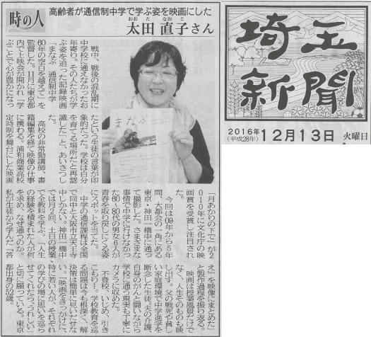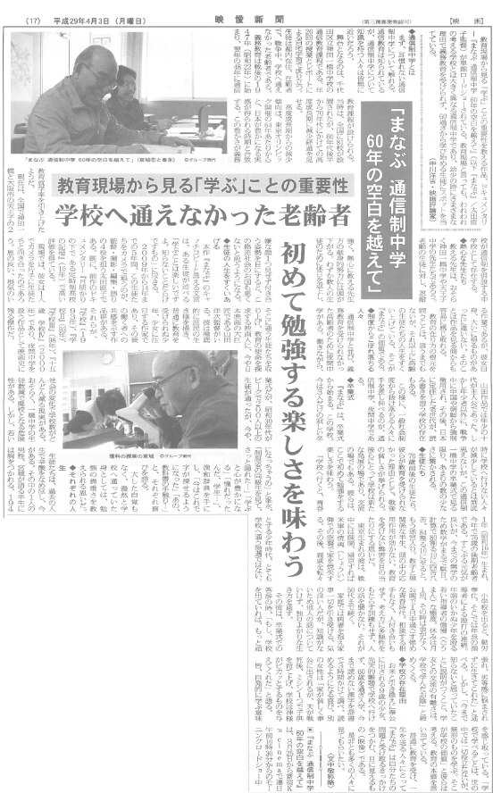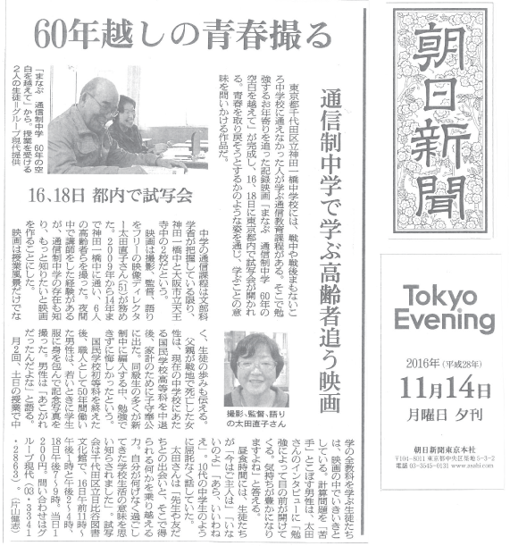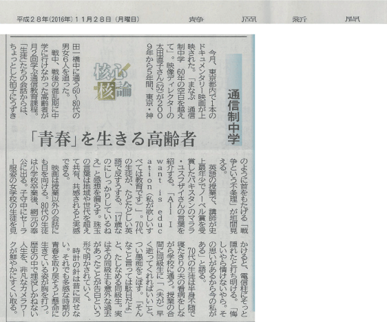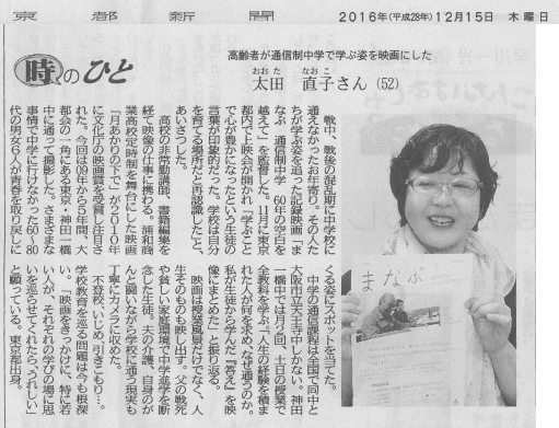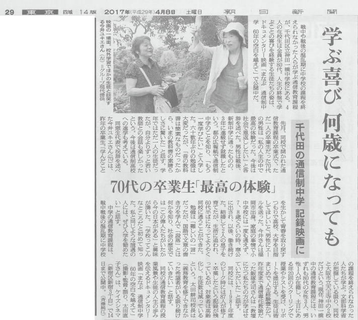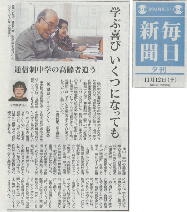通信制中学 高齢者の学ぶ姿追う ドキュメンタリー試写会