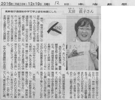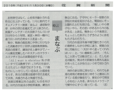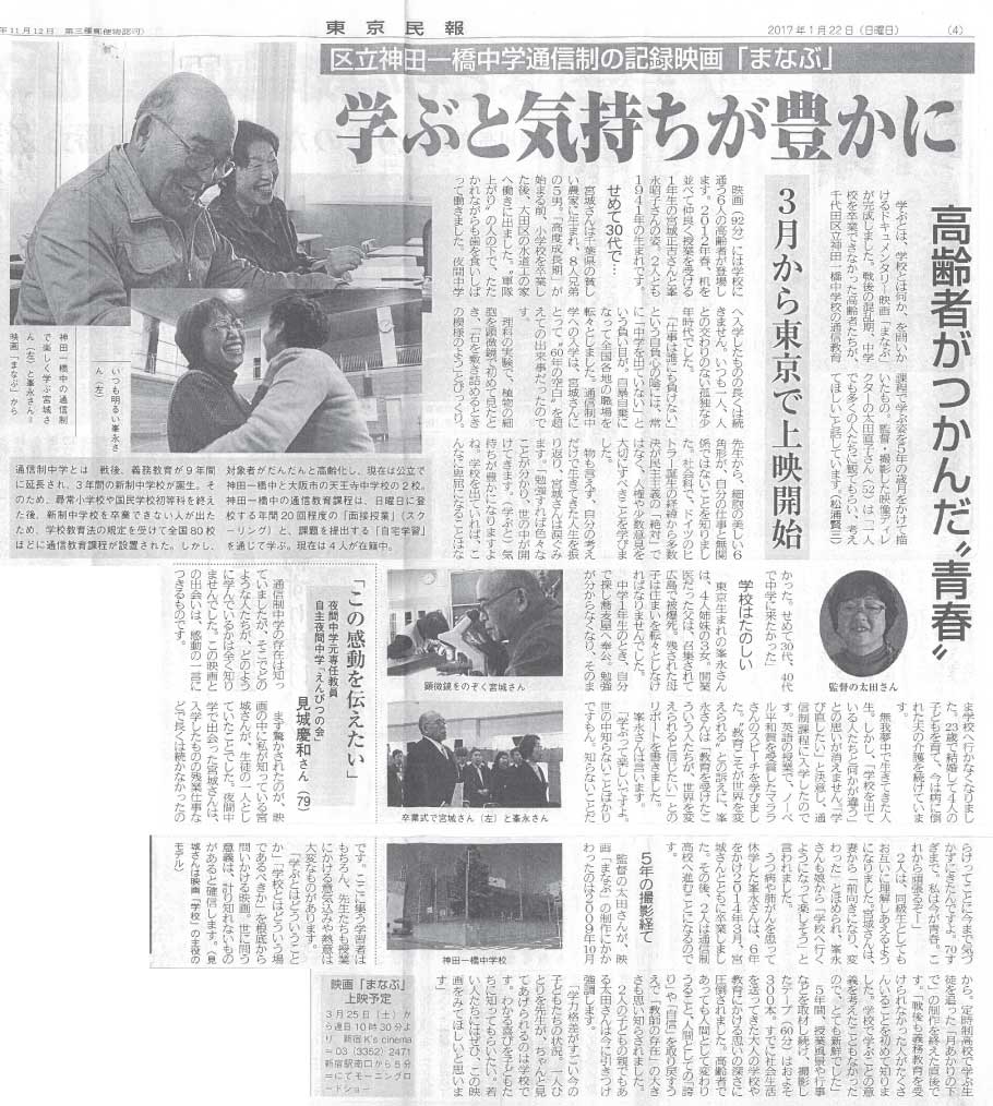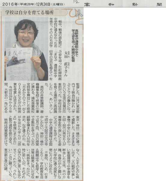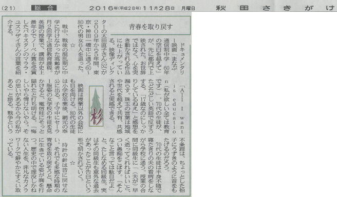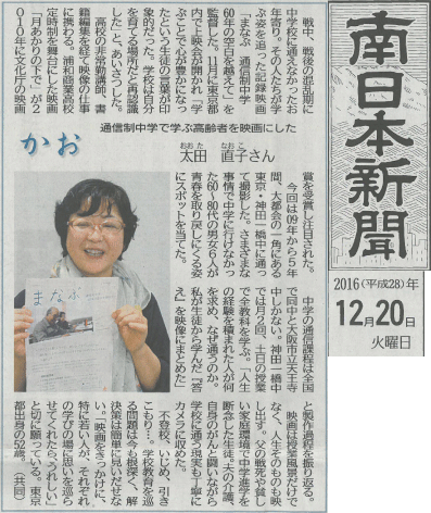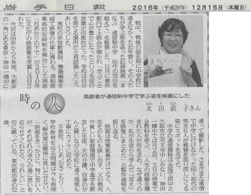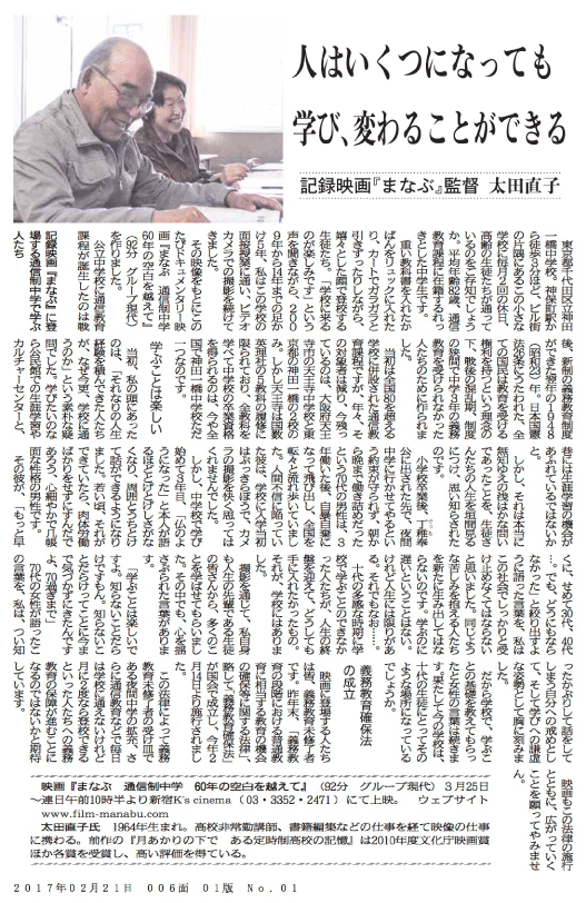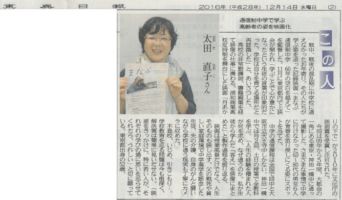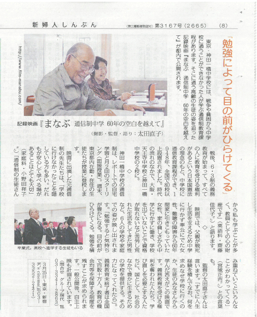 → マガ9レビュー vol.28 まなぶ 通信制中学 60年の空白を越えて(外部サイト) -